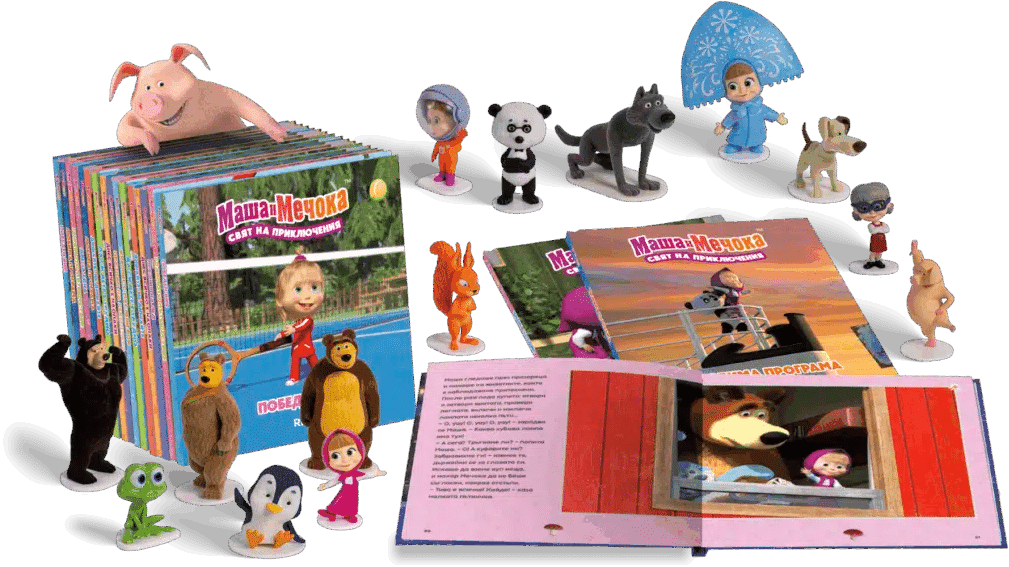 • Всеки брой включва колекционерска фигурка и книга с история за приключенията на Маша и Мечока.